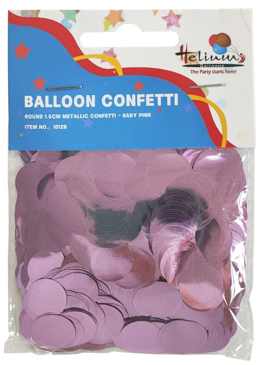 ROUND 1.5CM METALLIC CONFETTI 20GM-BABY PINK